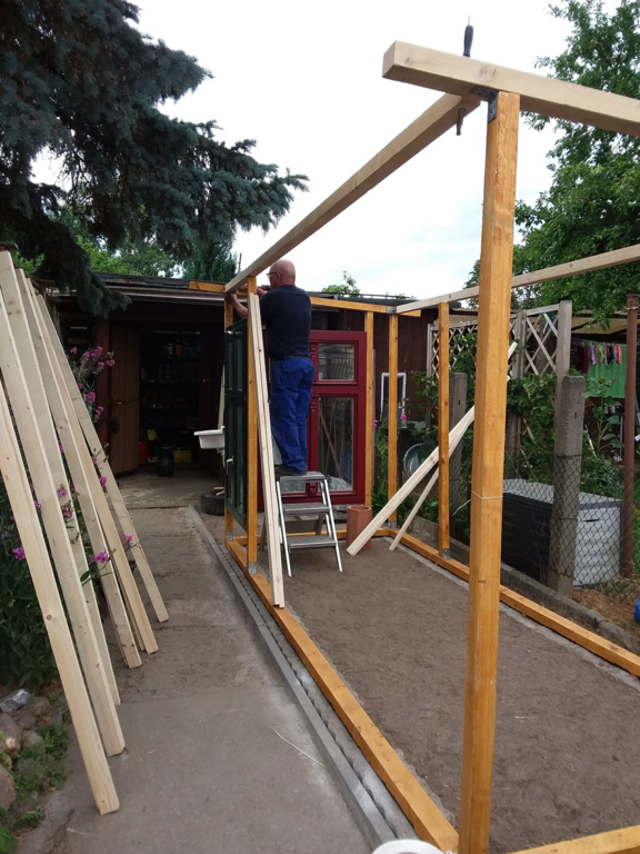 Im Winter werden außen Doppelstegplatten angebracht, um die Meeris vor Wind und Regen zu schützen.