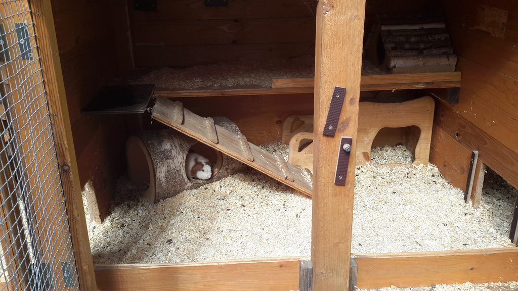wir sehr viel Auslauf haben wurden die unteren 4 Boxen mit Durchlässe versehen. Somit haben wir viel Platz zum spielen.