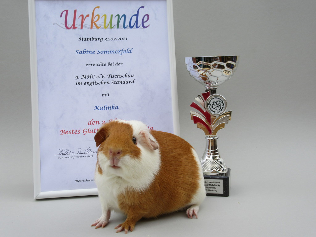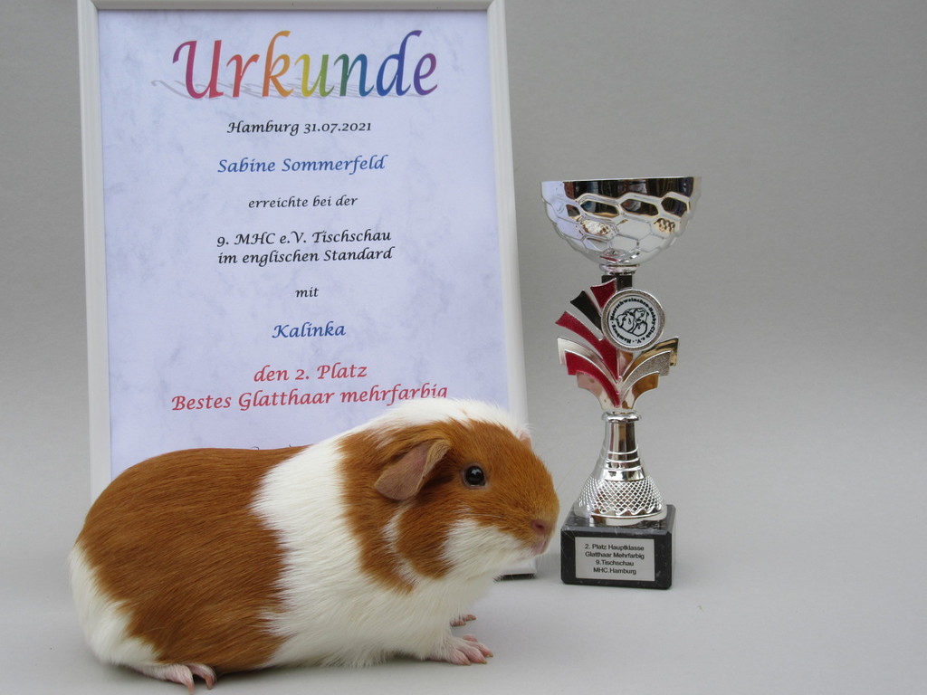 Kalinka hat den 2. Platz mit 95,5 Punkten, als bestes Glatthaar meerfarbig belegt.