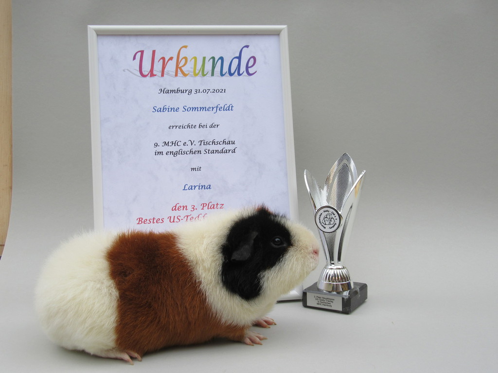 Larina hat mit 95,5 Punkten den 3. Platz als bestes US - Teddy dreifabig belegt.