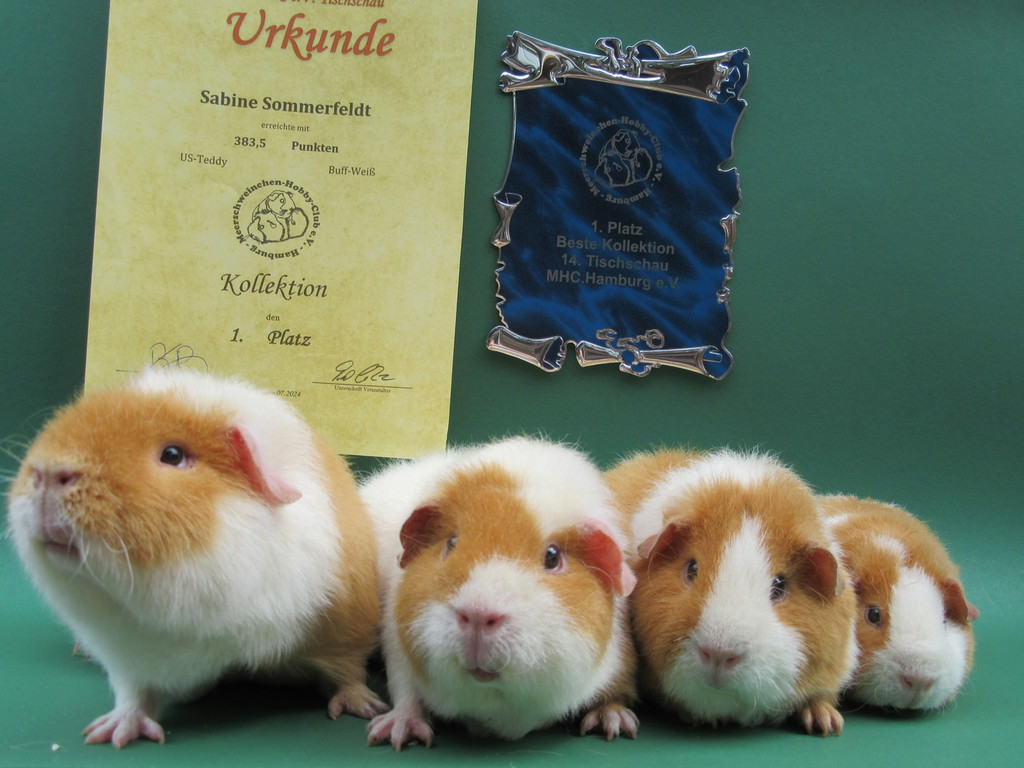 Meine 4 US - Teddys in Buff - Weiß Noa, Darknes, Anika, Ani haben mit 383,5 Punkten den 1. Platz in der Kollektion erreicht.