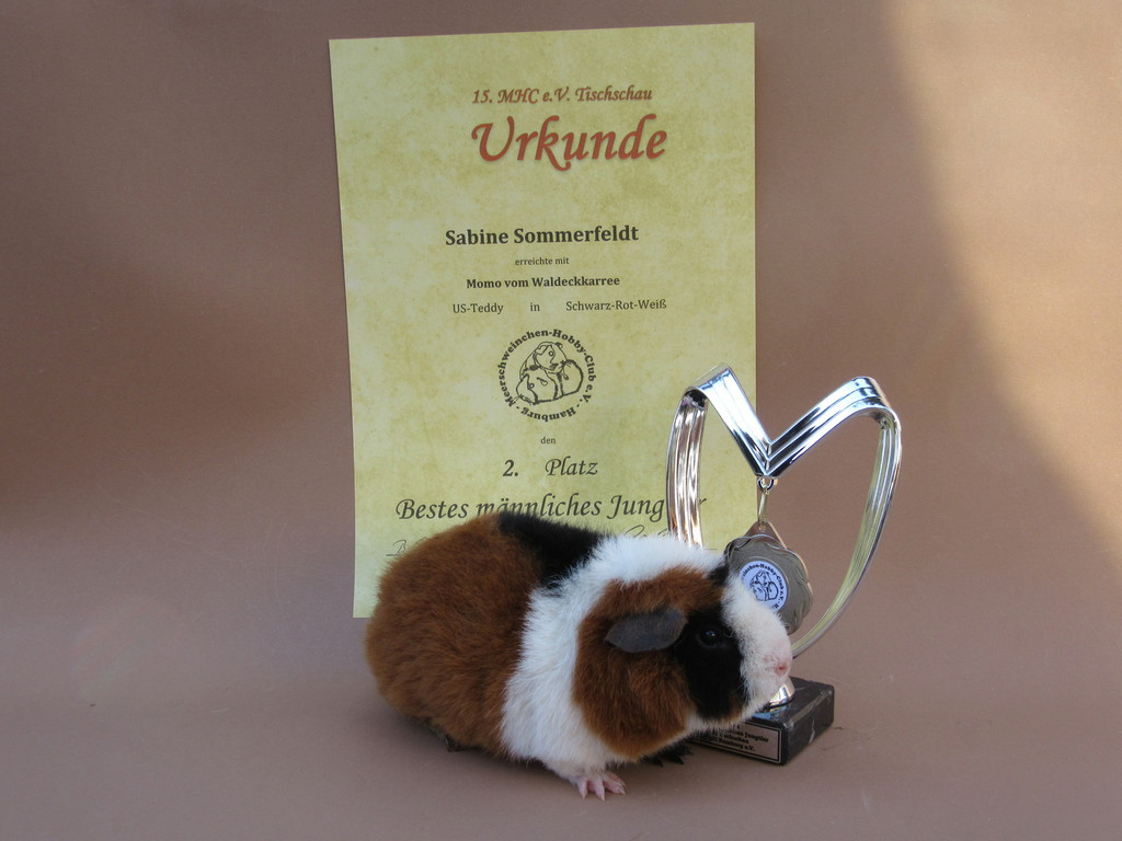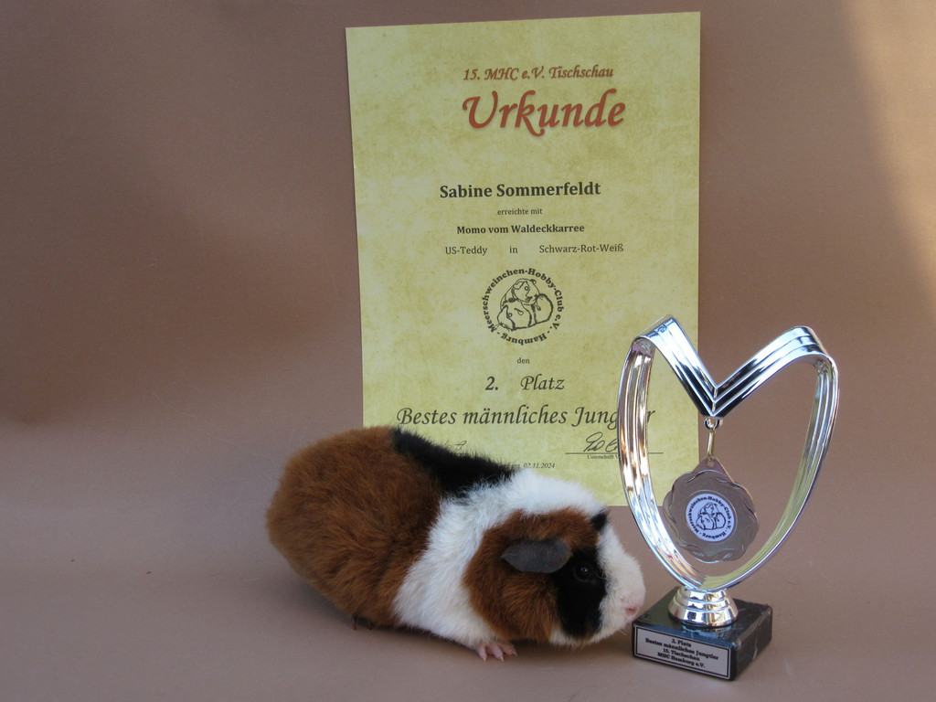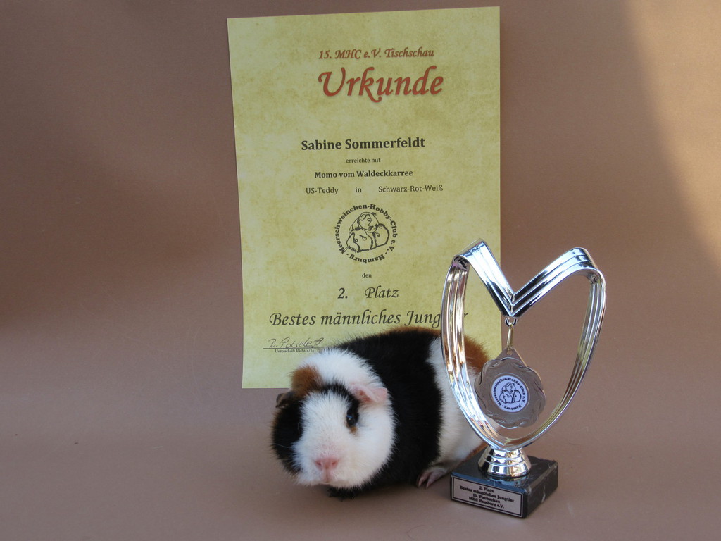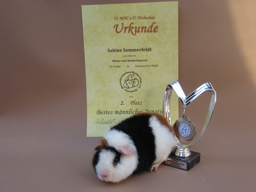 Momo hat den 1. Platz in der Unterklasse US - Teddy Schwarz - Rot - Weiß erreicht.