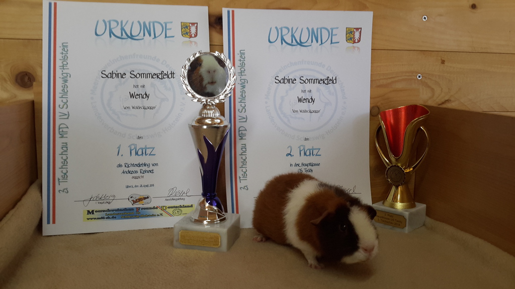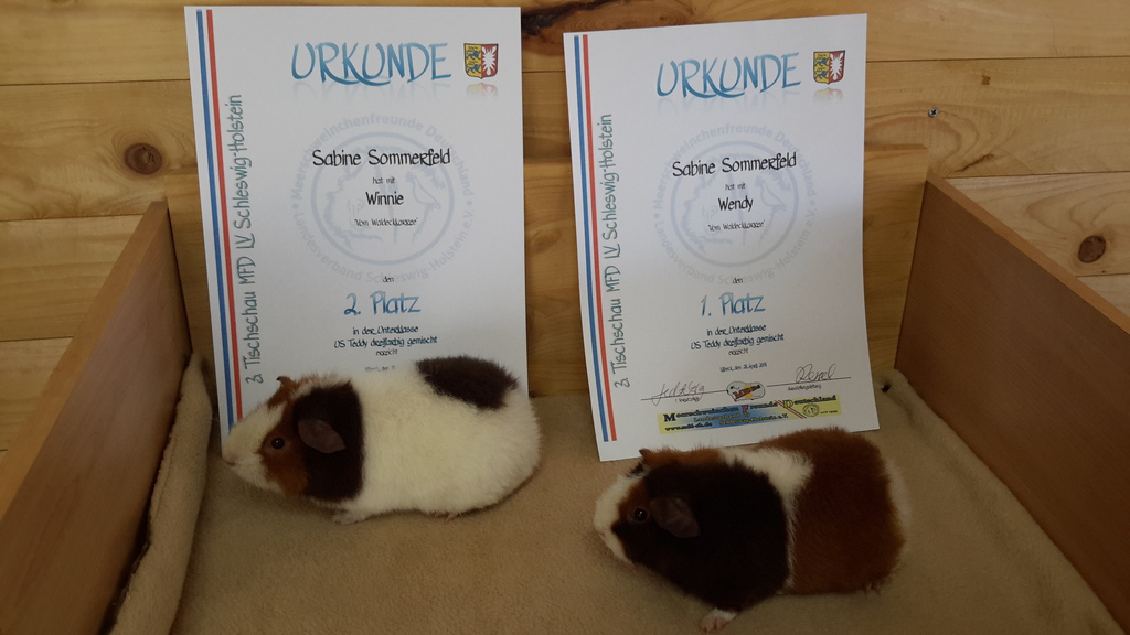 Der 1. und 2. Platz in der Unterklasse gingen an meine beiden Mädchen, Wendy und Winnie. Das hat mich schon sehr überrascht, aber ich bin überglücklich. In der Hauptklasse belegte meine Wendy den 2. Platz und bekam den 1 .Platz als Richterliebling, was mich richtig Stolz gemacht hat.