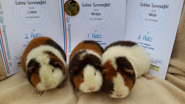 Und sie haben den 1.,2. und den 3. Platz in der Unterklasse belegt, in den Farben Schoko - Gold - Weiß.