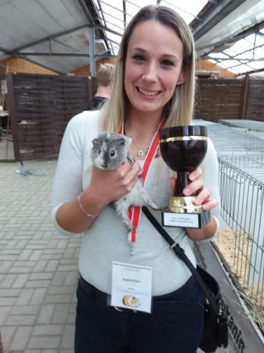 Auch meine Freundin Sandra hat mit ihren Liebhaber Tieren Erfolg auf dieser Ausstellung gehabt, die kleine Desteny hat den Zuschauer Liebhaber Pokal gewonnen. Was mich richtig Stolz macht, da sie aus meiner Zucht ist.